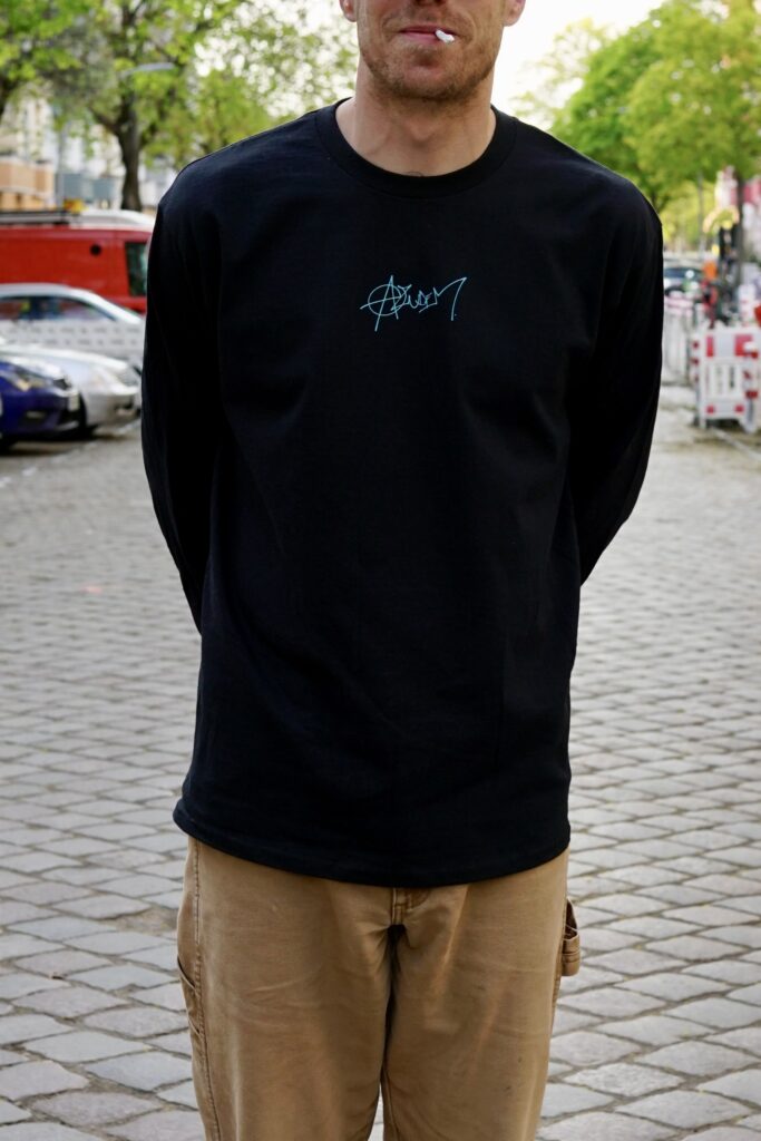 Gildan Ultra Cotton Longsleeve mit stabilen Bündchen an Arm und Hals, zweifarbiger Siebdruck auf dem Rücken. Backpiece von Homie FELEON aus den Niederlanden! Check him out!!